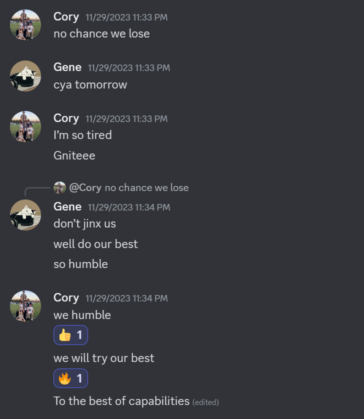 After our self proclaimed victory, we all went home and celebrated by playing some games together